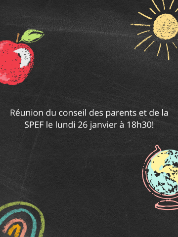 Réunion du Conseil de parents et Spef mercredi dès 17h00 à l'école.